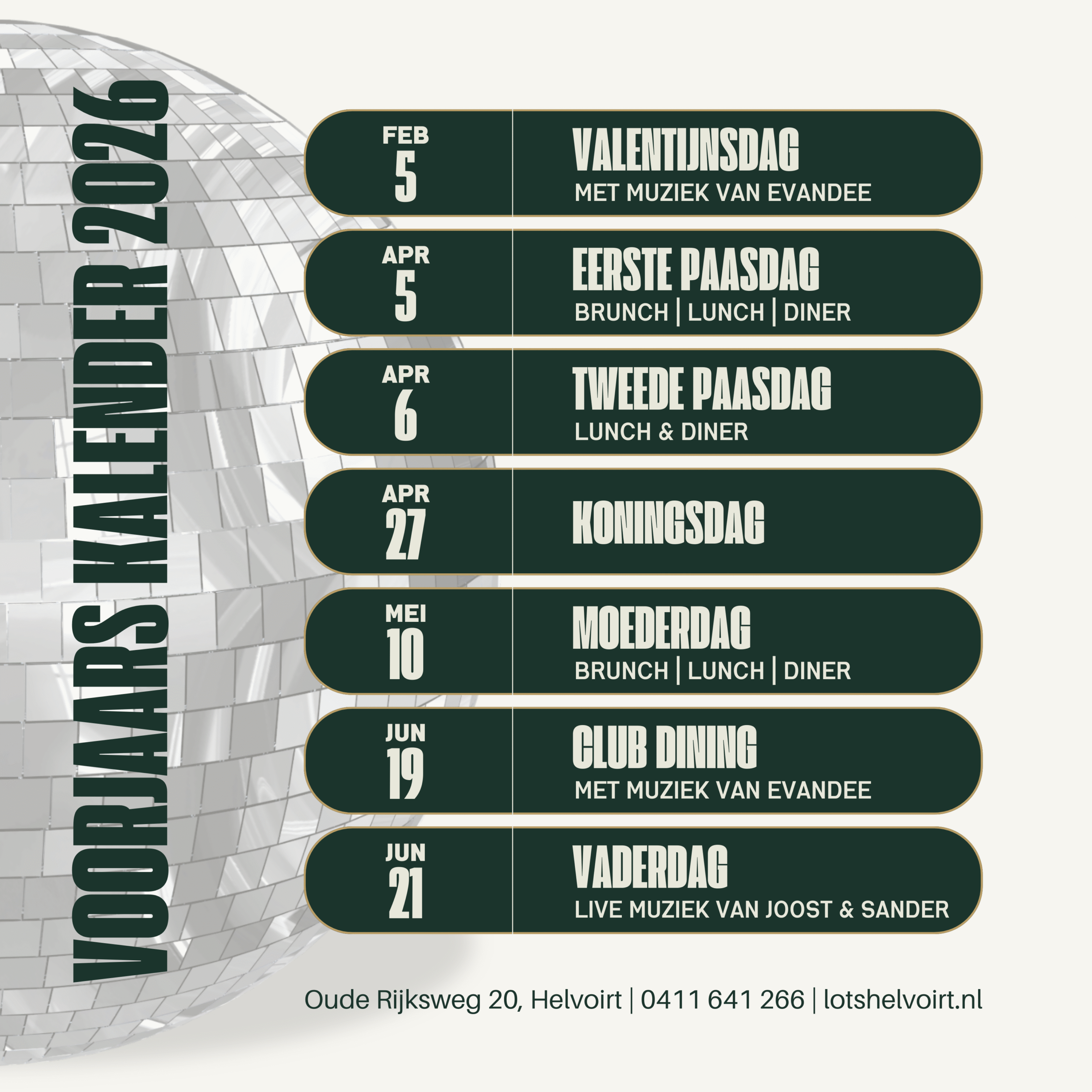 Aan de rand van het sfeervolle Helvoirt vind je LOTS: een eigentijds restaurant waar smaak, gastvrijheid en beleving samenkomen. LOTS is 7 dagen per week vanaf 11:00 geopend. Of je nu langskomt voor een verse lunch, een verrassend diner of onze unieke High Pancake. LOTS is er voor jong en oud, ieder moment van de dag.